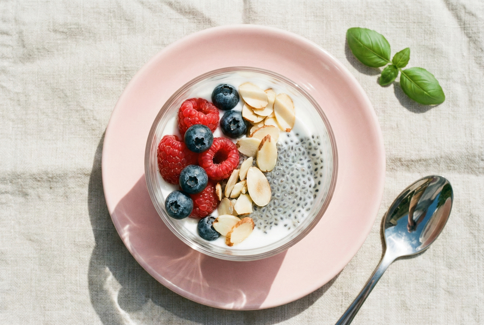 Yoghurt & Basil Seed Cup wtih Berries & Almonds