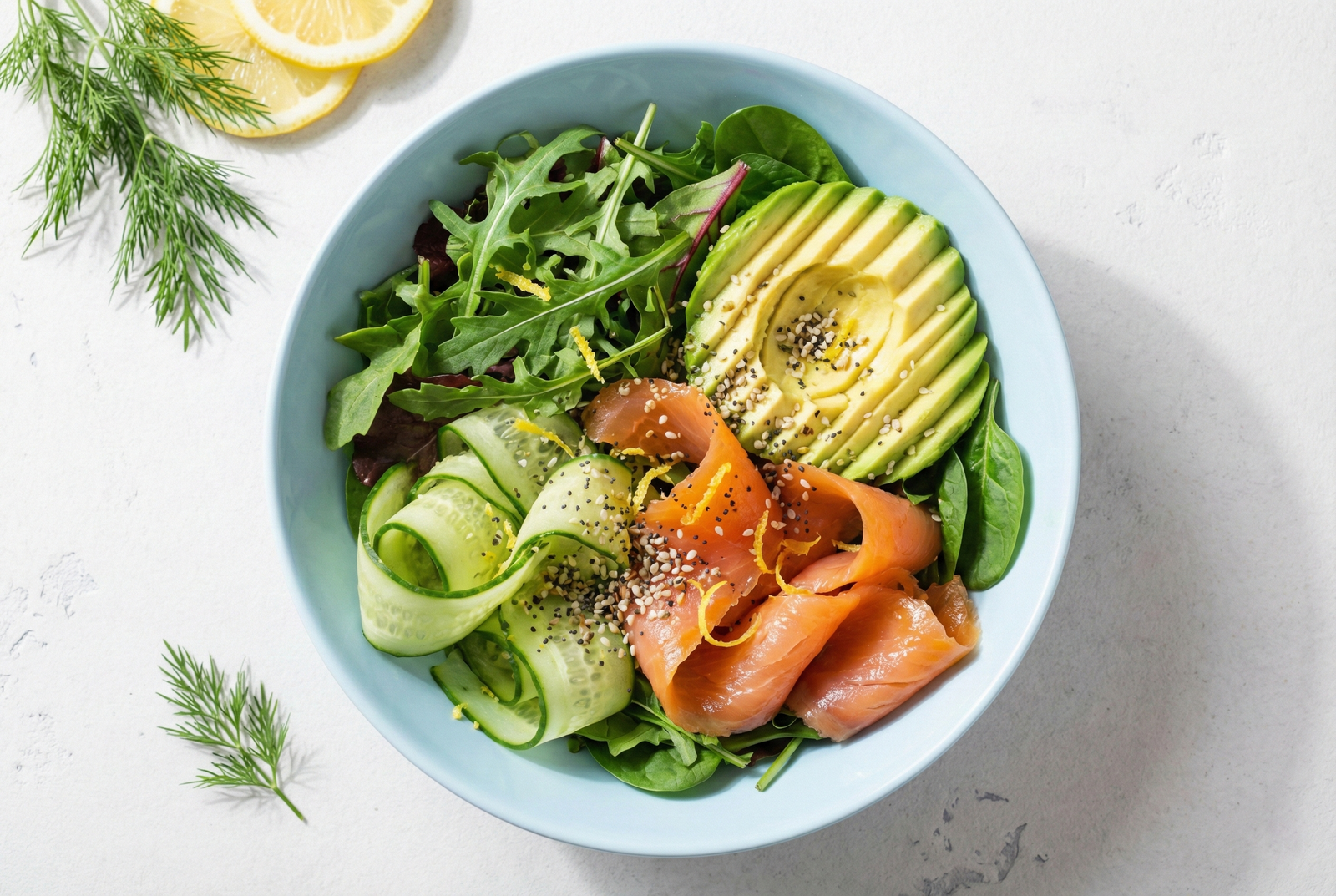- High-quality proteins paired with healthy fats (avocado, olive oil, nuts, seeds)