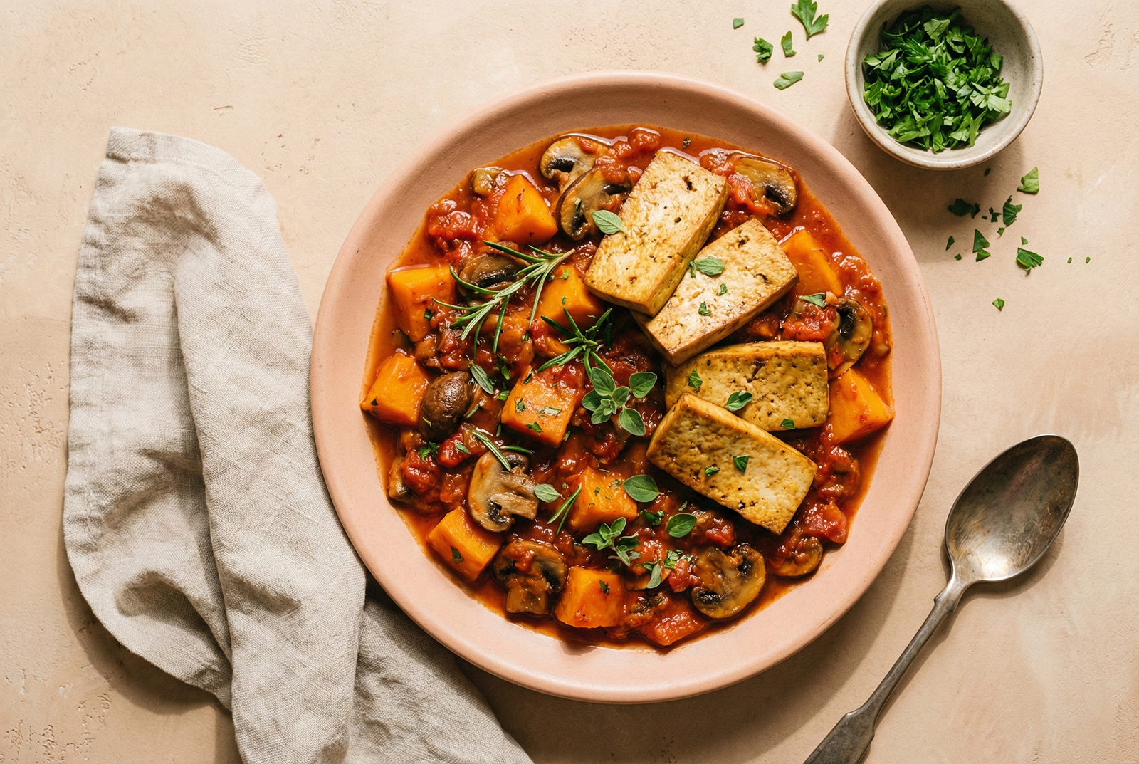 Pumpkin Mushroom Ragu & Marinated Tofu